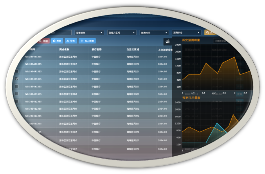預(yù)測(cè)加鈔計(jì)劃:通過(guò)參數(shù)配置(設(shè)備基礎(chǔ)參數(shù)、影響參數(shù))、預(yù)測(cè)模型,一鍵生成設(shè)備T+0~T+5預(yù)測(cè)加鈔計(jì)劃;