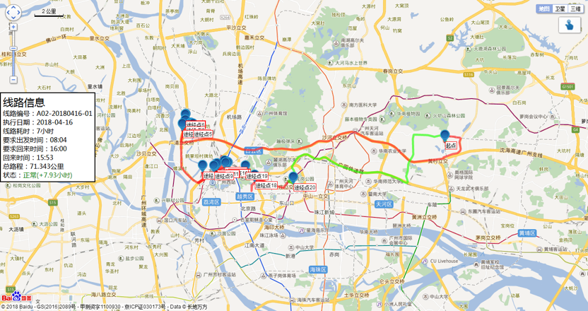 線路規(guī)劃:運(yùn)用主流地圖系統(tǒng),采用greedy algorithm,實(shí)現(xiàn)線路任務(wù)可視化規(guī)劃。